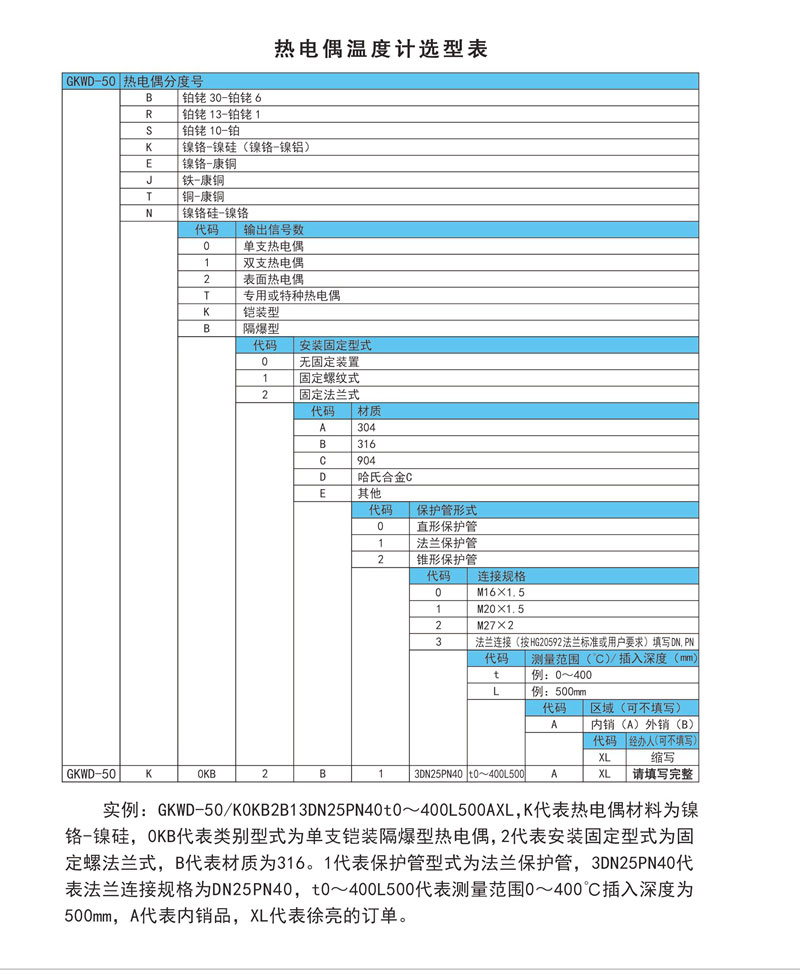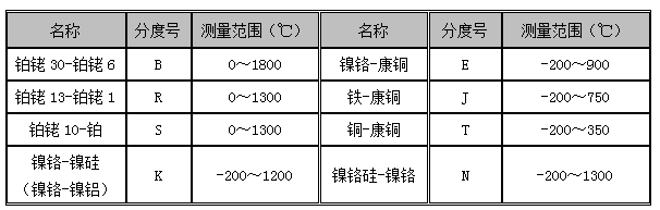 熱電偶溫度計選型表